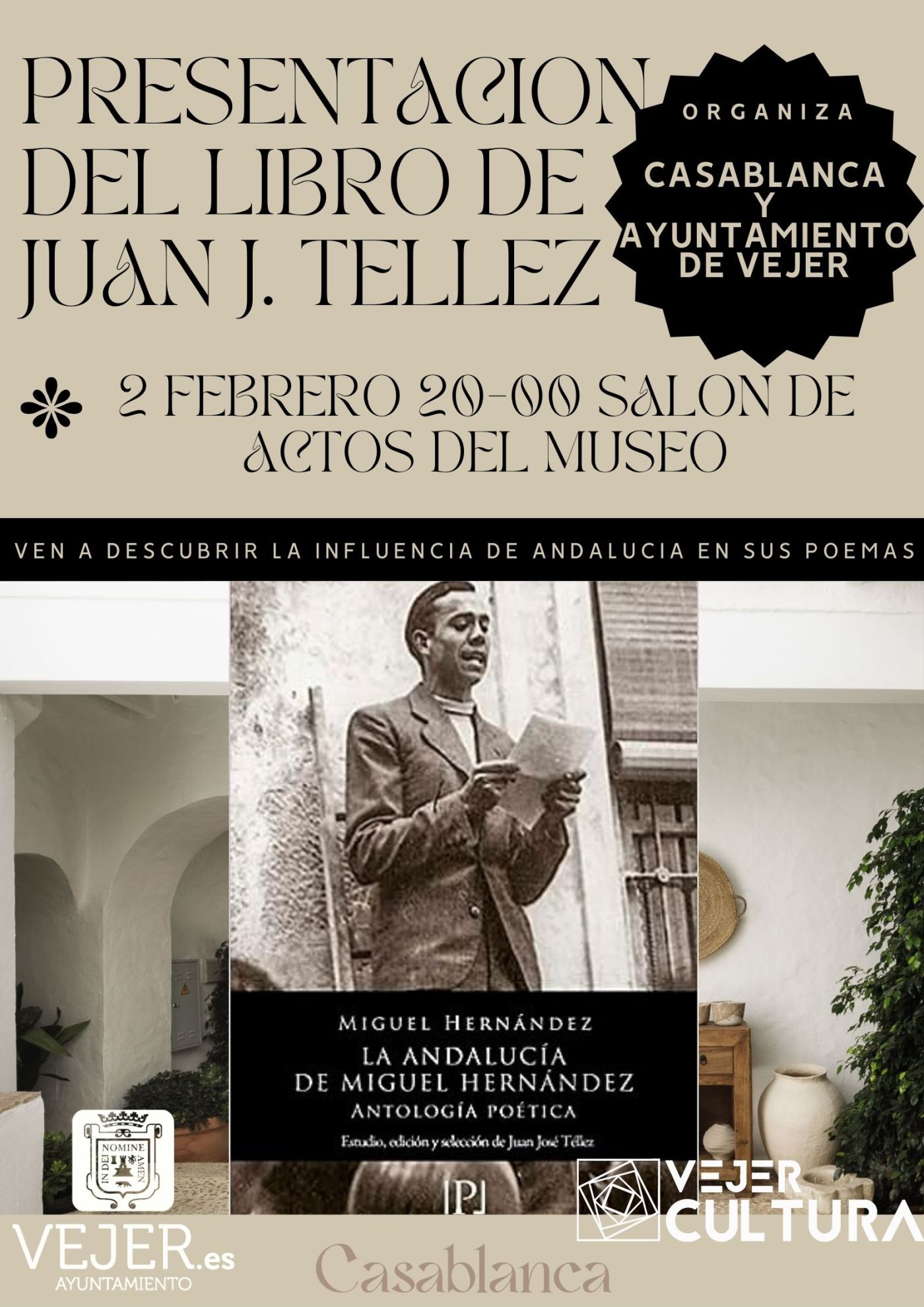 2 de febrero, 20:00h. Presentación del libro del escritor Juan José Téllez sobre «La Andalucía de Miguel Hernández». ¿Dónde? En el salón de actos del museo de Vejer de la Frontera Este evento forma parte de la iniciativa «Encuentros en Casablanca», organizado entre el complejo de apartamentos históricos dedicados al bienestar con termas y solárium, […]